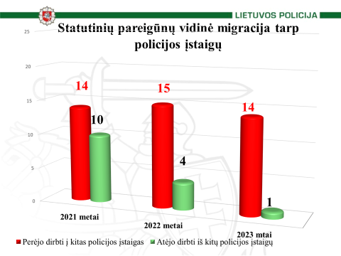Marijampolės apskr. VPK 2023 metais dirbo 370 statutinių pareigūnų. Per visus 2023 metus iš mūsų įstaigos išėjo 37 policijos pareigūnai, o naujų pavyko priimti tik 25. Labai daug policijos pareigūnų, ypač jaunų mūsų kolegų išeina tęsti tarnybą į didesnesias apskritis, tai yra Kauno, Vilniaus, Klaipėdos. Jaunimą traukia didelių miestų šurmulys ir jie migruoja į šiuos miestus ne tik dirbti, bet ir gyventi. Per 2023 metus iš mūsų policijos įstaigos į kitas policijos įstaigas išėjo 14 policijos pareigūnų, o atėjo tik 1. Prieš keletą metų nebuvo tokių ryškių disproporcijų, pvz. 2021 metais išėjo 14, o iš kitų policijos įstaigų atėjo 10 policijos pareigūnų. Viena iš priežasčių, tai adekvačios butpinigių kompensavimo sumos, už kurias jauni kolegos gali išsinuomoti būstus ir kurti savo gyvenimą didesniuose miestuose. Taip pat sunkiau pritraukti ir studentus baigusius Lietuvos policijos mokyklą, kurie taip pat mieliau renkasi didžiuosius miestus. Iki 2023 metų pas mus iš Lietuvos policijos mokyklos ateidavo apie 12 paruoštų pareigūnų, pernai, nors įstojo 12, tačiau pas mus dirbti tegrįžo vos 6. Kita problema, tai pareigūnų išėjimas į pensiją. Šiuo metu apie 80 pareigūnų, o tai yra apie 22 proc. visų statutinių pareigūnų, išdirbę policijos sistemoje daugiau nei 25 metus ir turi teisę išeiti į pensiją. Per 2023 metus į pensiją išėjo 11 pareigūnų, kai tuo tarpu 2022 metais – tik 9.