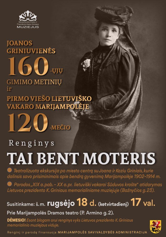 Šiemet švenčiame dvigubą sukaktį: Joanos Griniuvienės 160-ąsias gimimo metines ir pirmo viešo lietuviško vakaro Marijampolėje 120- metį!